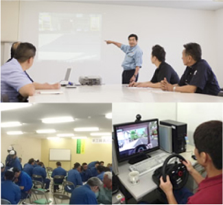 吉田海運グループでは、物流企業の基本である“より安全に”“より正確に”お預かりした荷物を取り扱い、運ぶためにコンプライアンス推進室を設置し、デジタルタコグラフやドライブレコーダーなどの装備と、研修などの教育の両面からアプローチしています。その中でも、創業以来の信頼を未来へ繋ぐ人財の育成には特に力を注ぎ、更に高品質なサービスが提供できるように取り組んでいます。